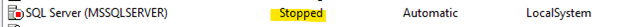 Picture of SQL stopped in SQL Server Configuration Manager. This issue occurred regardless of the account that starts SQL – it did not matter if it was a local account or domain account.